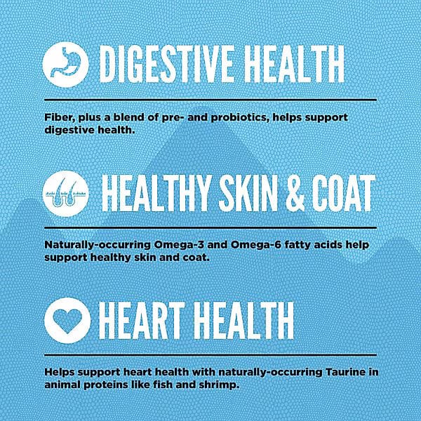 - Supports digestive health, healthy skin and coat, and heart health.