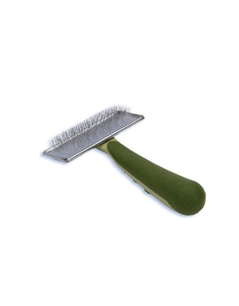 Keep your cat healthy and beautiful with the Safari Cat Soft Slicker Brush! The brush reduces shedding to keep your cat and home clean. The stainless steel pins easily remove tough mats and tangles in all coat types. Regular use helps prevent hairballs and promotes your cat's health. You'll love the way this brush enhances the natural luster of your cat's coat. Plus, the comfort-grip handle makes it easy to use. Use this brush in your grooming routine to maintain your cat's soft coat!