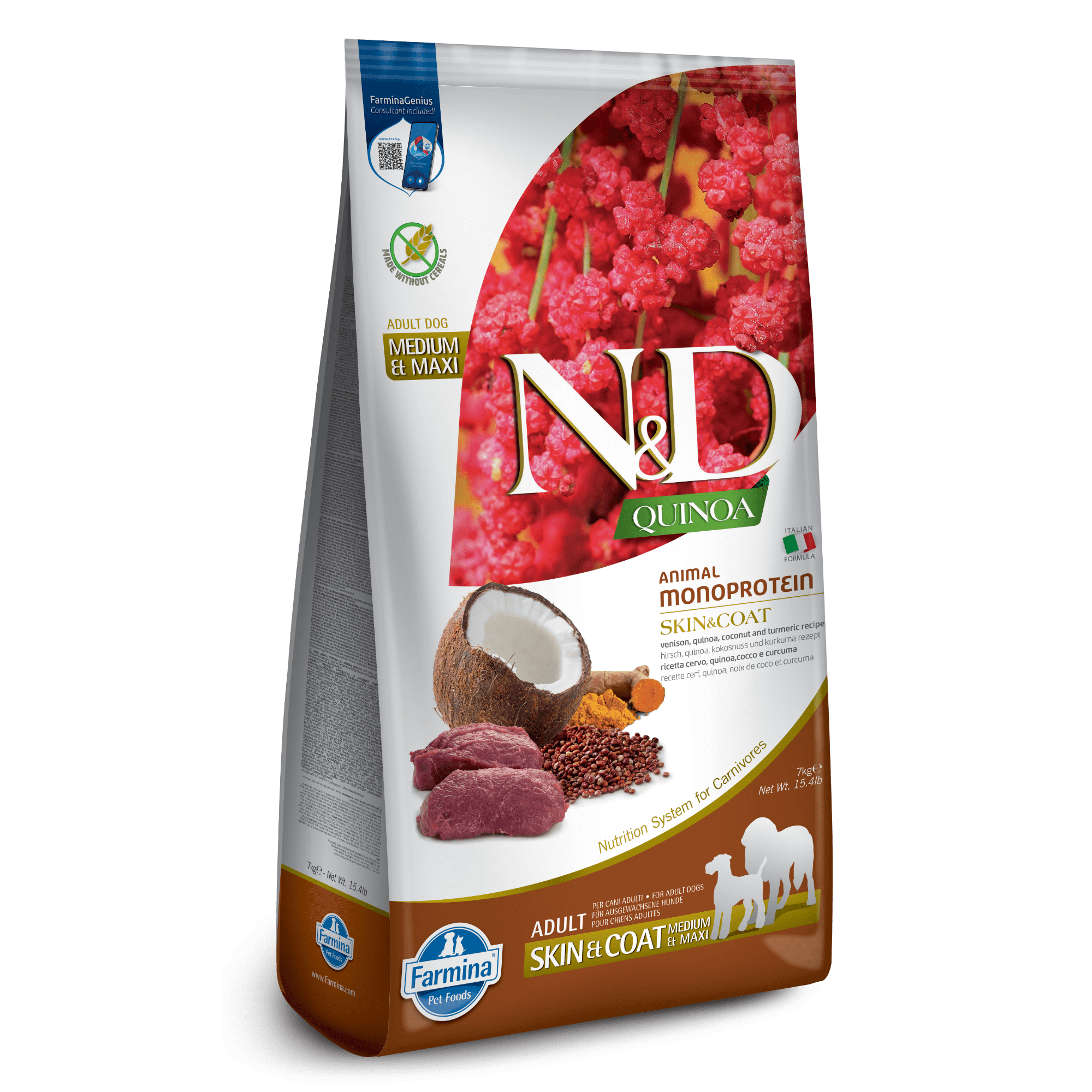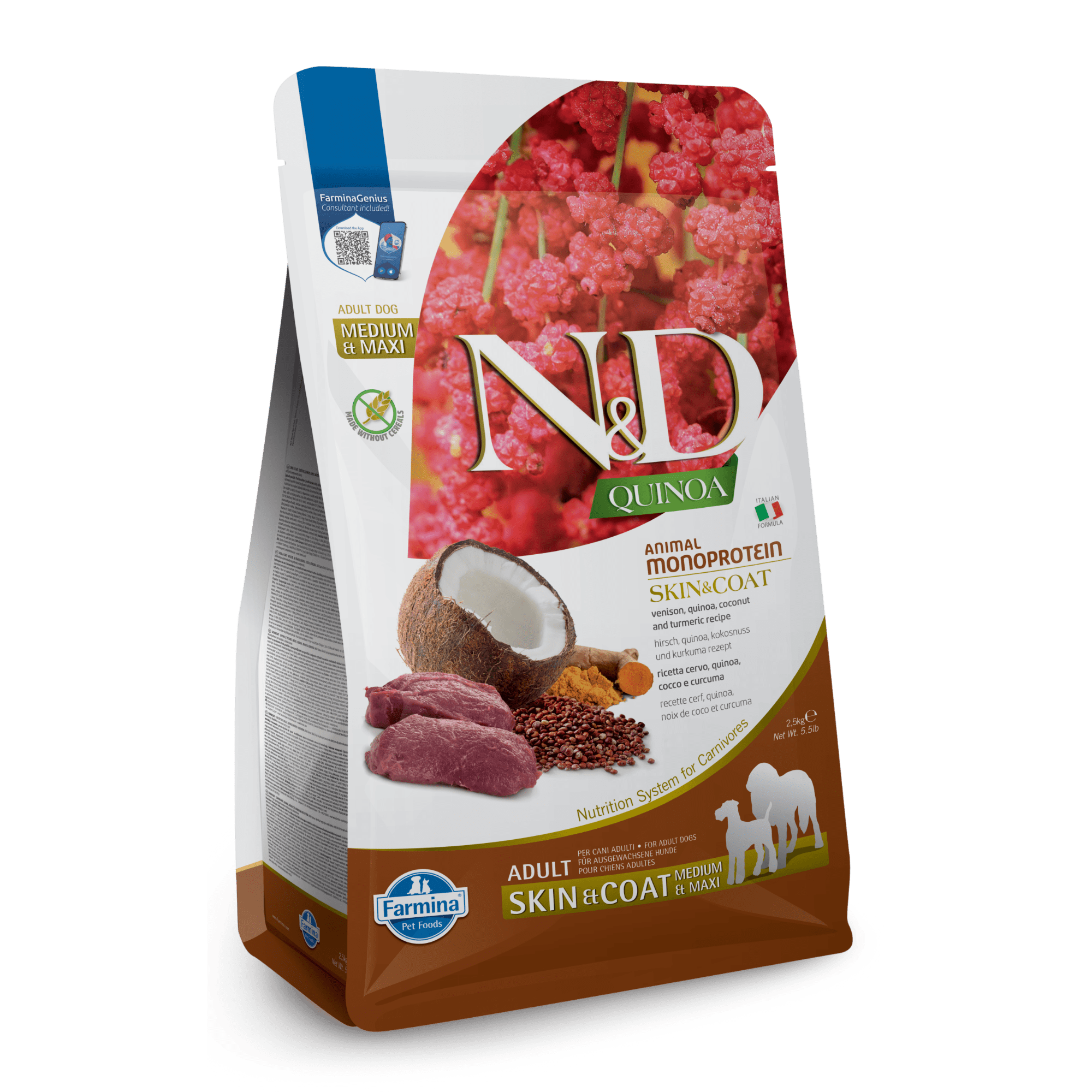Farmina N&D Quinoa Skin & Coat Venison, Coconut & Turmeric Medium & Maxi Adult Dry Dog Food