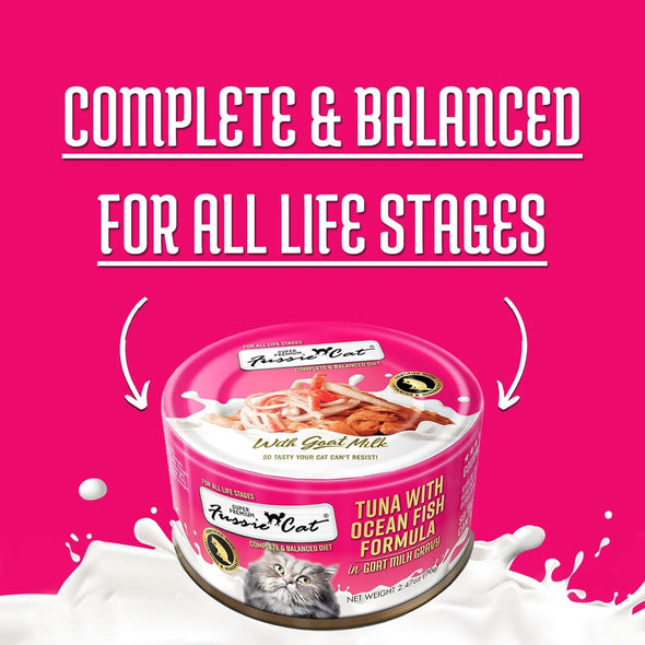 Fussie Cat Tuna with Ocean Fish in Goat Milk Gravy Shredded Canned Cat Food