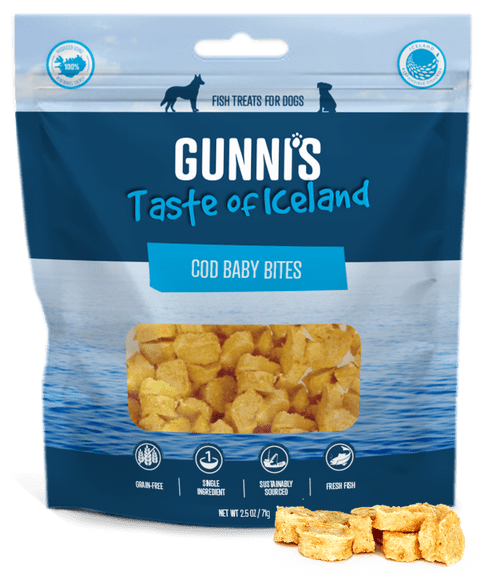 Our Cod Baby Bites are super tasty super premium dog treats made from single ingredient whole Cod meat. Our Cod Baby Bites are protein packed! Indulge your dog with these delicious, crunchy treats or use them to train and reward your best friend.