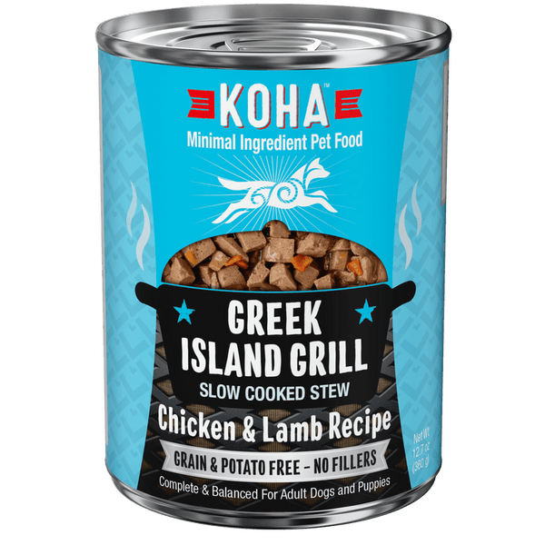 Make mealtime exciting with KOHA Greek Island Grill Slow Cooked Stew. Your dog will love the delicious taste of chicken & lamb in a moisture-rich stew. No pita required. With meat as the first ingredient and no carb-loaded fillers that can lead to digestive issues, KOHA slow cooked stews are easy to digest and ideal for picky eaters.
