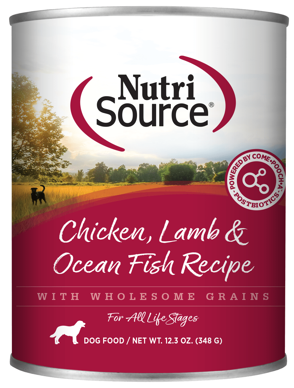 NutriSource Chicken, Lamb and Ocean Fish Select Pate-Style dog formula is a holistically formulated, easy-to-digest pate canned food, now powered by Come-Pooch-A postbiotics. We combine tasty chicken, lamb and ocean fish with carefully selected holistic ingredients. We also utilize our Alltech Good 4 Life supplements by adding highly digestible minerals & potent prebiotics and probiotics to promote growth and support immunity and health for your special friend. Health starts here!