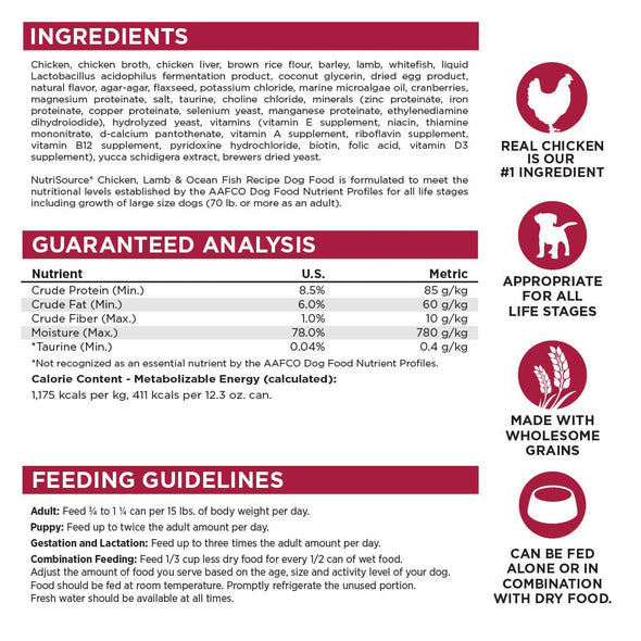NutriSource Chicken, Lamb & Ocean Fish Canned Dog Food