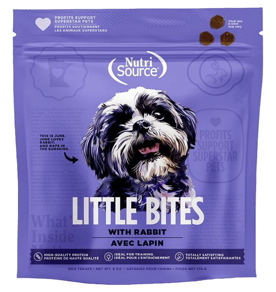 NutriSource Rabbit Little Bites are made with high-quality protein. Real foods that dogs love in a treat make these totally satisfying!
