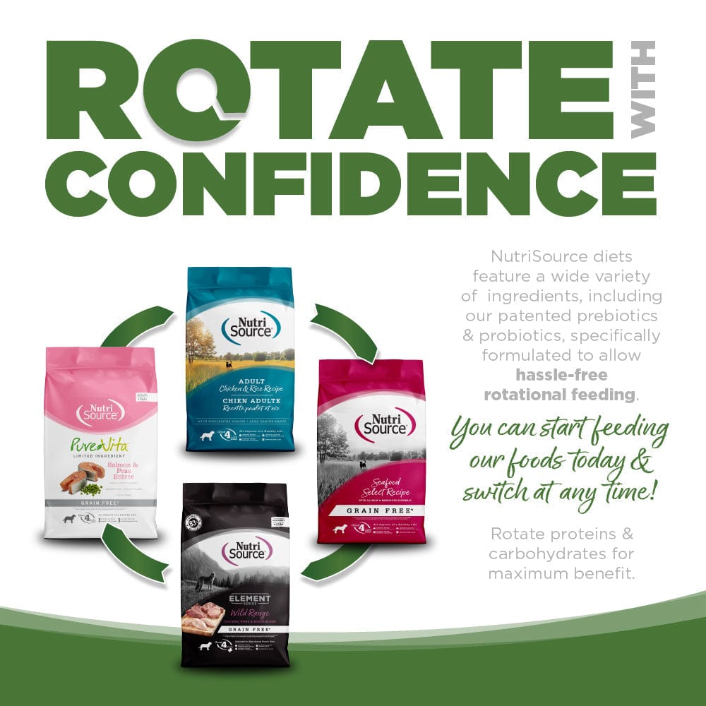 - NutriSource diets are scientifically formulated with a wide variety of digestible ingredients to allow for hassle-free rotation of proteins, fats, and carbohydrates.