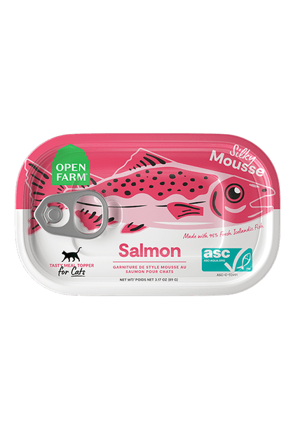 Open Farm's Salmon fish topper is an irresistible addition to your cat’s diet, thanks to the 95% fresh Icelandic & MSC & ASC certified fish and a silky mousse texture that your cat will crave! Open Farm's toppers are made in a human grade facility with 100% human grade ingredients.