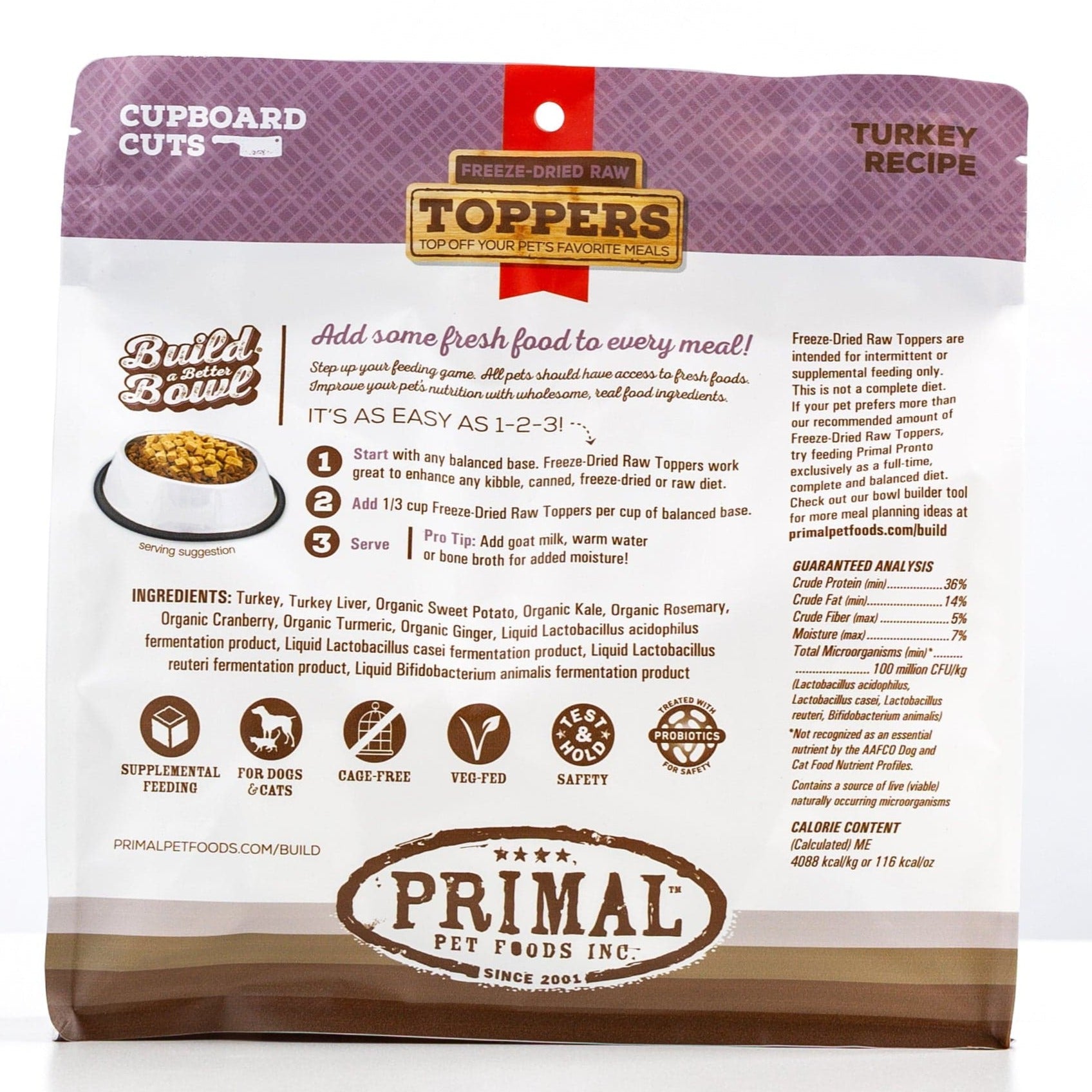 Primal Cupboard Cuts Freeze-Dried Raw Turkey Meal Topper for Dogs and Cats
