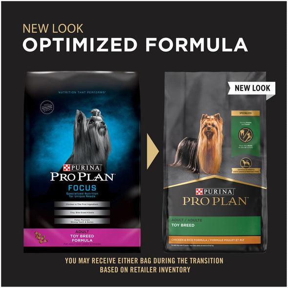 Deliver big taste and wholesome nutrition to your toy-breed dog's bowl with Purina Pro Plan Brand Dog Food Toy Breed Chicken & Rice Formula adult dry dog food. Real chicken as the first ingredient helps provide protein, which is an essential building block, while the optimal protein-to-fat ratio helps maintain an ideal body condition. Fortified with guaranteed live probiotics for digestive and immune health, this mouthwatering formula features bits of bite-sized kibble that are easy for your toy breed to chew at feeding time and a delicious flavor that keeps him coming back for more. Every ingredient in this super premium dry dog food recipe is carefully chosen for a specific nutritional or functional purpose, giving your canine companion a high-quality meal option you can both appreciate. Formulated for adult toy-breed dogs weighing under 10 pounds, this Purina Pro Plan dry dog food offers specialized nutrition for your dog's exceptional life.Ingredients