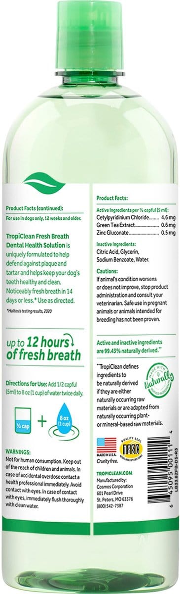 TropiClean Fresh Breath Dental Health Solution Water Additive for Dogs