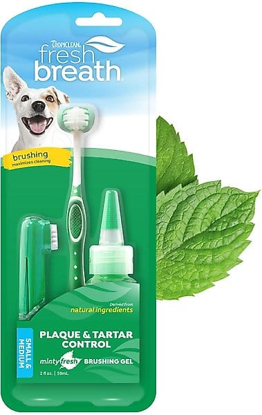 TropiClean Fresh Breath Oral Care Plaque & Tartar Remover Small/Medium Dog Toothbrush Kit