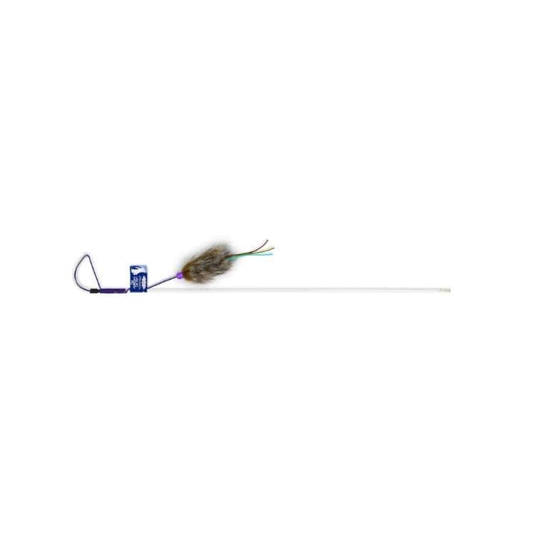 The PURRfect Cat Toy by Vee Enterprises is the original wand toy for fun and interaction with your feline! It has a 32 Inch flexible and durable wand, with "noise-maker" bb's built in for added interest. The multicolored plush faux animal "lure" has satin tails and is attached to a 36 Inch reinforced woven cord.