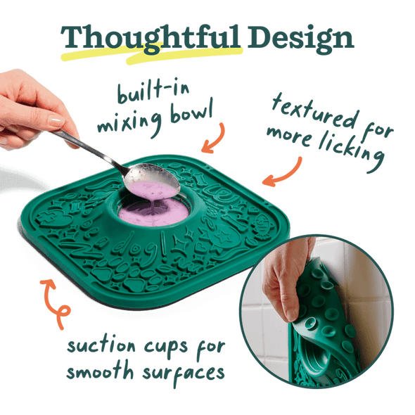 Simply use the desired spread of your choice (we recommend LickMix, which is designed to be made in the pre-portioned mixing bowl), attach to a smooth surface, and let your dog play! When they’re finished, hand wash the LickMat or drop it in the dishwasher. Pair with Bacon & Cheese or Calming LickMix, or use DIY options like peanut butter or yogurt.