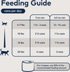 6.5-oz: For every 8.8 lb. of cat body weight, feed approx. 1 can per day.