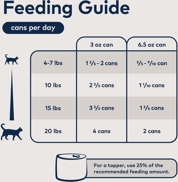 3-oz: For every 8.8 lb. of cat body weight, feed approx. 2 cans per day.