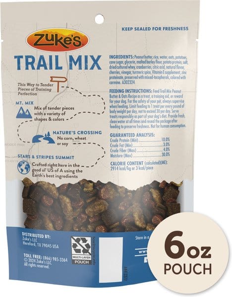 Zuke's Trail Mix Natural Peanut Butter & Oats Recipe Soft & Chewy Dog Treats